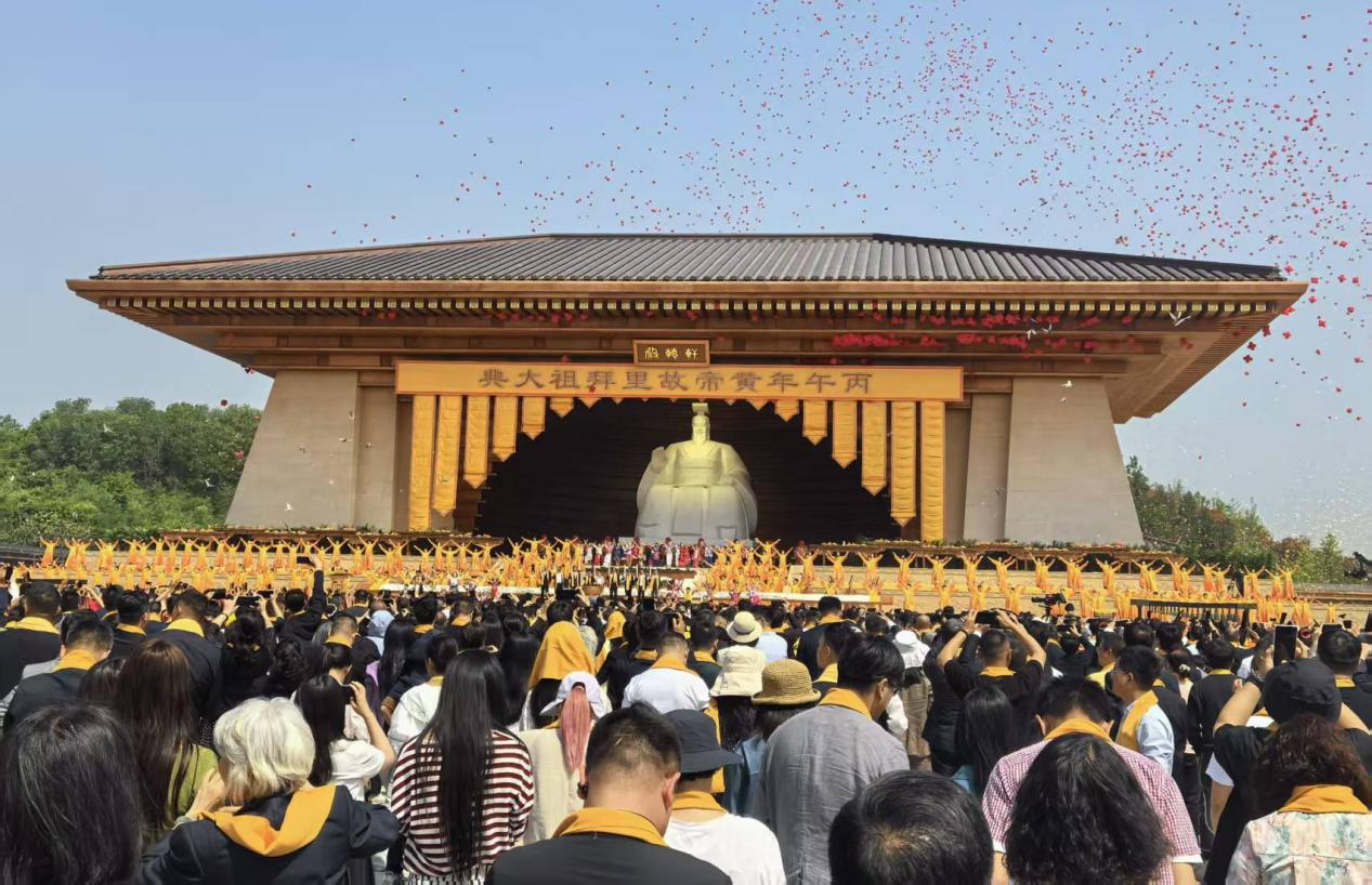 4月19日,与会人员参加由河南省人民政府、政协河南省委员会、国务院台湾事务办公室、中华全国归国华侨联合会、中华全国台湾同胞联谊会、中华炎黄文化研究会联合主办,郑州市人民政府、政协郑州市委员会承办,新郑市人民政府协办的丙午年黄帝故里拜祖大典,以最虔诚的赤子之心,恭拜人文始祖轩辕黄帝,祈愿祖国繁荣昌盛、世界和平安宁。